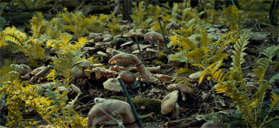 Meanwhile in the forest of a state park in Maryland, some kids find mushrooms with hands sticking out of the ground. (The creepiness of Brian Reitzell’s music shines here.) Beverly Katz comes to inform Will of what they found while he practices at the firing range. He’s much friendlier with Beverly this time as the main cast starts to settle into its rhythm. We’re soon out in Maryland while the crime scene teams speculates. But they’re not alone; Freddie Lounds is also at the scene, manipulating a local police officer who tells her Will is a consultant with the FBI. The pendulum swings, and Will is in profile mode until he’s interrupted by two things: a vision of Garret Jacob Hobbs and OH HOLY SHIT the bodies aren’t all dead.